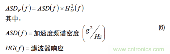 如圖1所示,陀螺儀信號鏈常常包括濾波器,這有助于減少線性振動引起的噪聲。以頻譜項(幅度、頻率)定義振動可在估算噪聲貢獻時考慮濾波器的影響。加速度頻譜密度(ASD)函數是以頻譜項表達振動的常見方式,通常使用單位g2/Hz。下面通過示例說明已知ASD和陀螺儀頻率響應(HG)時估算噪聲幅度的步驟: