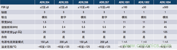 ADI公司最近推出了一系列新型低噪聲、低功耗、3軸加速度計:提供模擬輸出的ADXL354;提供數字輸出和±2 g、±4 g、±8 g可編程范圍的ADXL355;提供模擬輸出的ADXL356;提供數字輸出和±10 g、±20 g、±40 g可編程范圍的ADXL357。