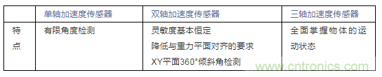 該使用哪種加速度傳感器,應根據具體的應用要求而定,比如檢測傾斜角范圍、檢測對象在XYZ三軸運動上是否有限定、檢測精度要求等等。