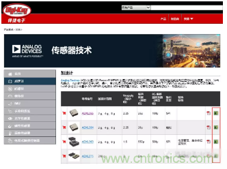 舉個例子, ADI三軸加速度傳感器ADXL355BEZ配套的評估板可以在Digi-Key的產品頁面中配用欄中找到匹配的評估板EVAL-ADXL355Z。也可以通過ADI加速度傳感器選擇與開發板選擇頁面中最后一欄中找到對應的開發板。