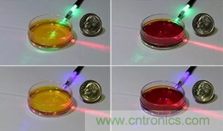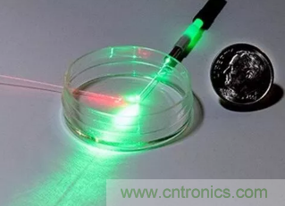 圖1:美國和澳大利亞的研究人員開發了一種非侵入性、即時測量液體pH值的方法,該方法使用了激光光源、光纖探頭以及一些基本的化學試劑。