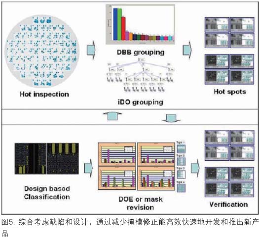 用與設(shè)計(jì)相關(guān)的檢測設(shè)置,現(xiàn)在可以產(chǎn)生更智能化的檢測菜單,注意力集中在最重要的芯片區(qū)域。這一技術(shù)已成功地在開發(fā)和生產(chǎn)工廠中進(jìn)行了試驗(yàn)。引入新方法后,缺陷識(shí)別更有效,因而能通過分析實(shí)驗(yàn)結(jié)果減少工藝開發(fā)時(shí)間(圖5)。由于能方便地監(jiān)控關(guān)鍵結(jié)構(gòu),就可以評估每一組實(shí)驗(yàn),以便選擇刻印圖形結(jié)果最好的工藝條件。