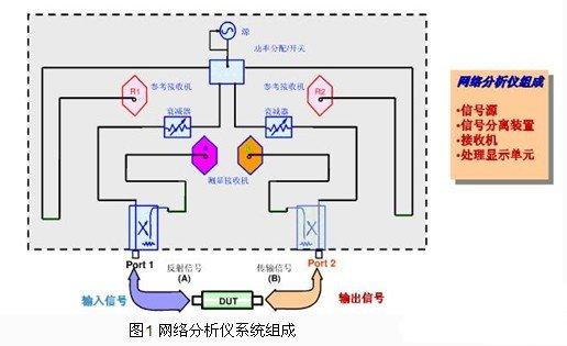 網絡分析儀主要由信號源、信號分離裝置、接收機和處理顯示單元組成,下面我們做詳細的說明。